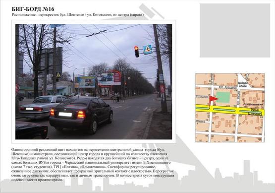 Заказать Билборд в г. Черкассы по адресу бул. Шевченко / ул. Котовского (от центра справа) (призматрон) можно позвонив менеджерам по телефонам: +38(099) 395-28-27, или через форму онлайн заявки