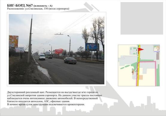 Заказать Билборд в г. Черкассы по адресу ул. Смелянская, 150 (возле аэропорта) можно позвонив менеджерам по телефонам: +38(099) 395-28-27, или через форму онлайн заявки