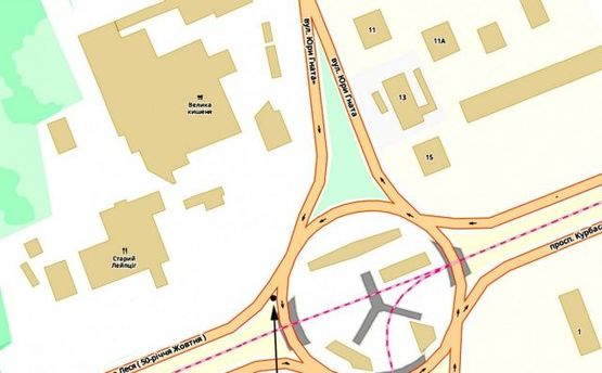 Схема рекламной плоскости по адресу Курбаса Л. пр-кт  / ул. Гната Юры, круговая развязка, возле ТЦ "Фокстрот", "Велика Кишеня", в центр