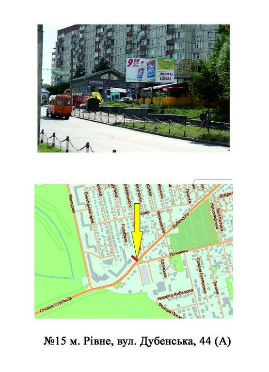Фото рекламной плоскости по адресу Дубенська 44 (кінцева зупинка міськ. транспорту)