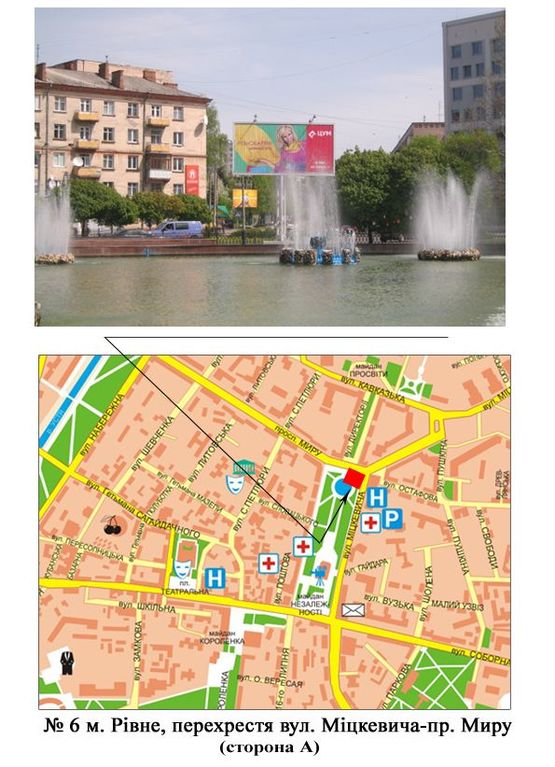 Заказать Билборд в г. Ровно по адресу перехр. вул. Міцкевича-пр. Миру можно позвонив менеджерам по телефонам: +38(099) 395-28-27, или через форму онлайн заявки