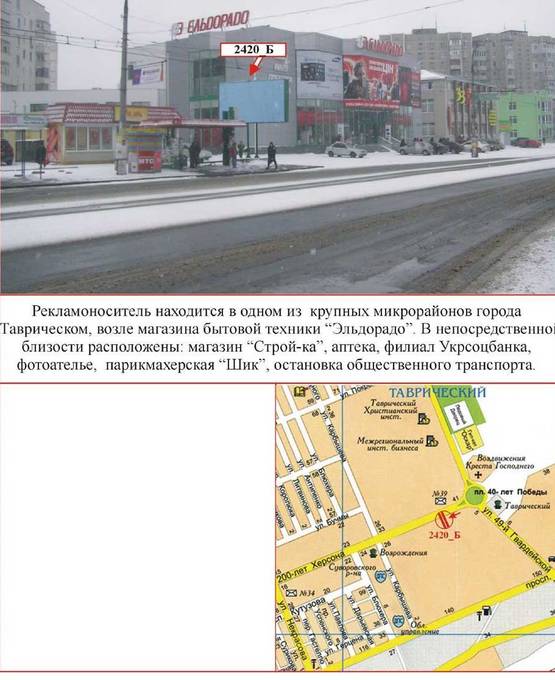 - Адрес: 200 лет Херсона/маг."Эльдорадо" ст.Б