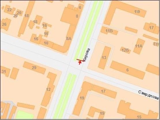- Адрес: пр.Кирова - ул.Свердлова, призматрон в центр
