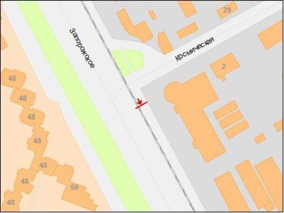 Схема рекламной плоскости по адресу ул.Запорожское шоссе - ул.Космическая, из центра
