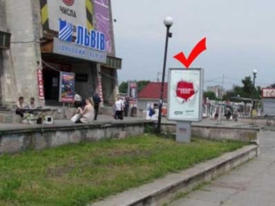 Фото рекламной плоскости по адресу вул.Кн.Ольги 106, біля входу в універмаг Львів