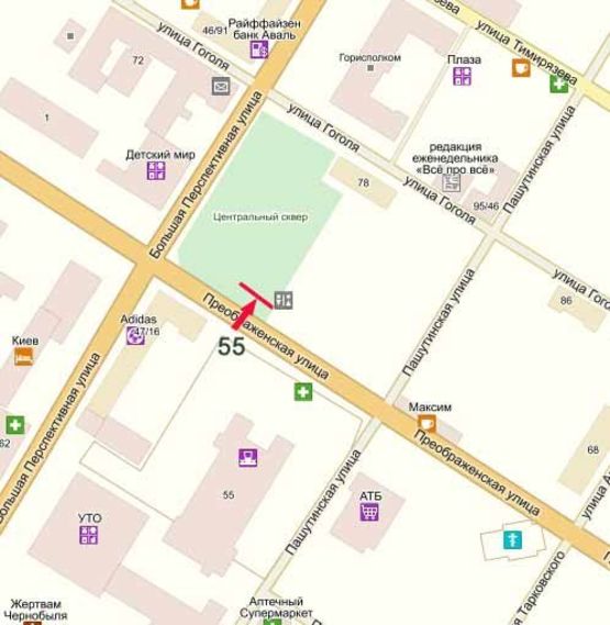 Схема рекламной плоскости по адресу Преображенская / К.Маркса- Центр. рынок."ЭЛЬДОРАДО" "ФОКС."ЦЕНТР.