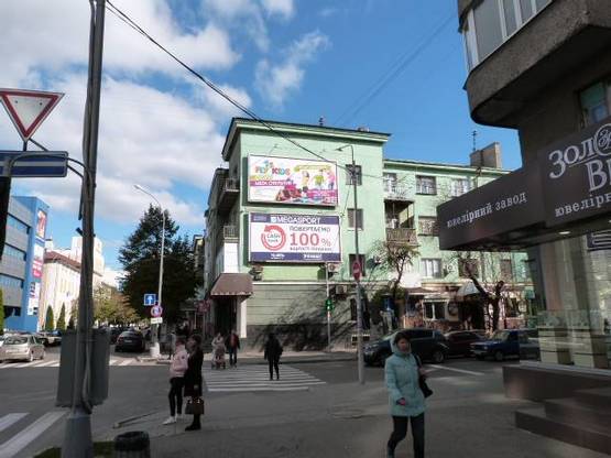 Билборд в г. Кременчуг на ул. Соборная (ул.Ленина), 28/40, на стене здания, район ТЦ «Мега» и «Галактика» (верхняя призма)