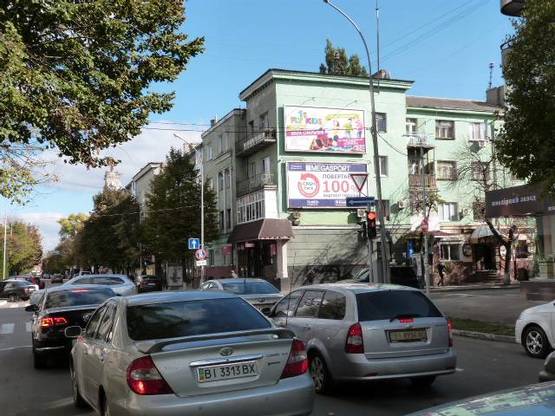 Билборд в г. Кременчуг на ул. Соборная (ул.Ленина), 28/40, на стене здания, район ТЦ «Мега» и «Галактика» (нижняя призма)
