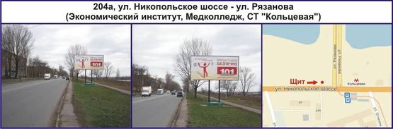 Билборд в г. Кривой Рог на ул. Никопольское шоссе - ул. Рязанова (Экономический институт, Медколледж, СТ "Кольцевая")