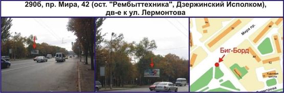Билборд в г. Кривой Рог на пр. Мира, 42 (ост. "Рембыттехника", Дзержинский Исполком), дв-е к ул. Лермонтова