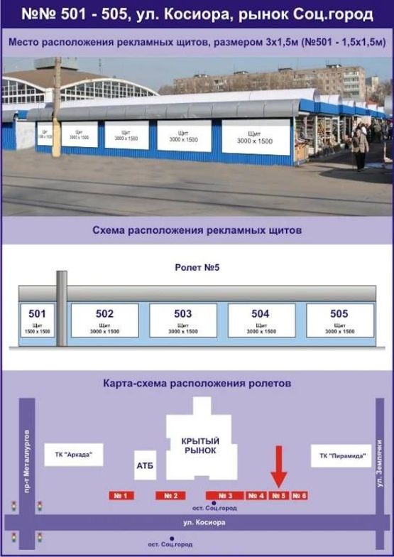 Схема рекламной плоскости по адресу ул. Соборная (Косиора), рынок Соц.город