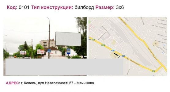 Билборд в г. Ковель на вул.Незалежності 57 - Мечнікова