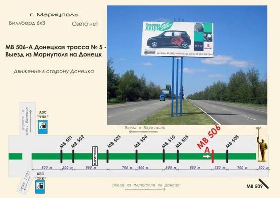 Билборд в г. Трассы на Донецкая трасса № 5 - Выезд из Мариуполя на Донецк