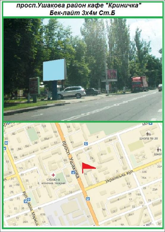Фото рекламной плоскости по адресу просп. Ушакова, буд. № 42                                   (р-н кафе Криничка)