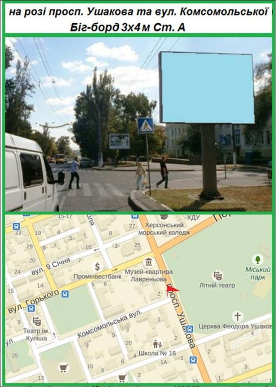 Билборд в г. Херсон на на розі просп. Ушакова та вул.Комсомольської (район Морського тренажерного центру)