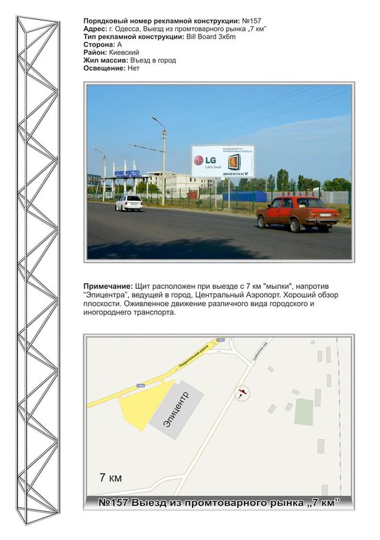 Заказать Билборд в г. Одесса по адресу №157 Овидиопольская дорога Выезд с промтоварного рынка ул.Базовая можно позвонив менеджерам по телефонам: +38(099) 395-28-27, или через форму онлайн заявки