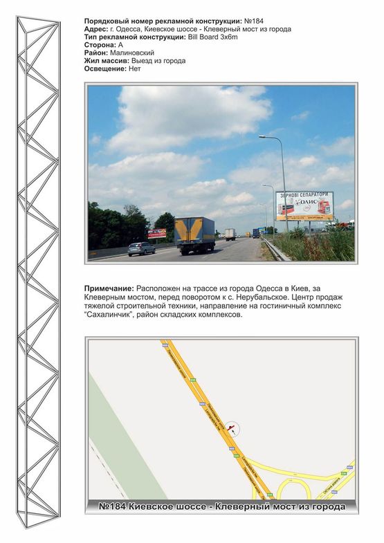 Билборд в г. Одесса на №184 Киевское шоссе выезд из города Клеверный мост