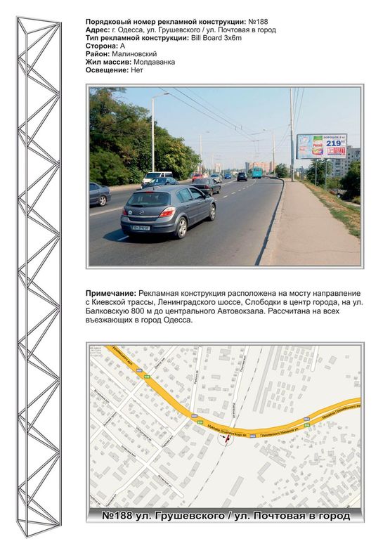 Билборд в г. Одесса на №188 ул.Грушевского - ул.Почтовая в город