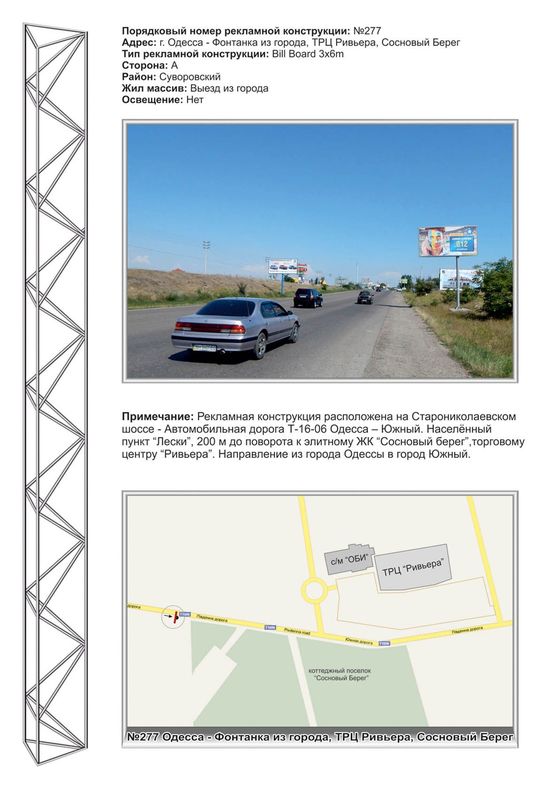 Фото рекламной плоскости по адресу №277 Одесса - Фонтанка из города перед поворотом  в ТЦ Ривьера, РЕАЛ, Сосновый Берег