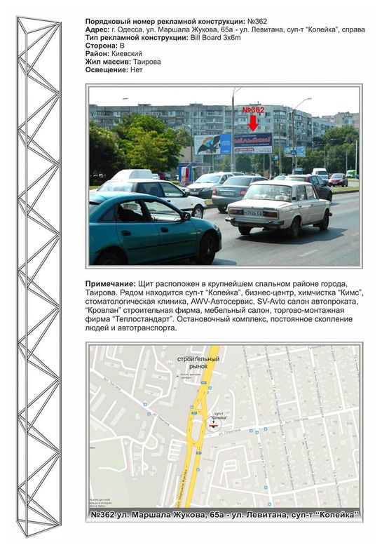 Билборд в г. Одесса на №362пр М.Жукова,65а - ул. Левитана, суп-т Копейка