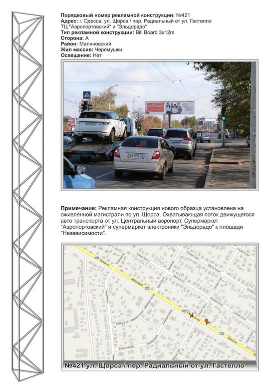 Билборд в г. Одесса на №421л ул.Щорса / ул.пер Радиальный от ул.Гастелло ТЦ "Аэропортовский" и "Эльдорадо"