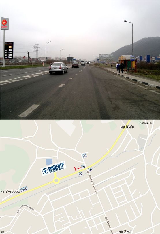 Фото рекламной плоскости по адресу вул. Лавківська (біля "Епіцентра", траса Київ-Чоп, перед колом, в сторону м. Ужгород, Берегово)
