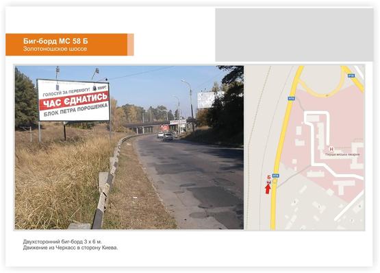 Заказать Билборд в г. Черкассы по адресу Золотоношское шоссе выезд из города можно позвонив менеджерам по телефонам: +38(099) 395-28-27, или через форму онлайн заявки