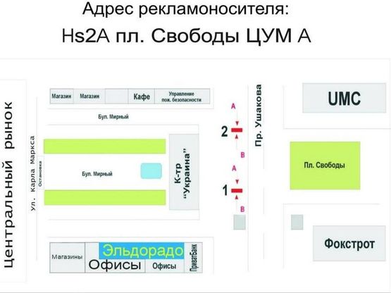 Схема рекламної площини за адресою пл. Свободы ЦУМ
