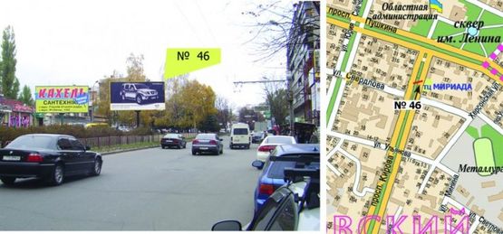 Билборд в г. Днепропетровск/Днепр на пр.Кирова - ВНИЗ, перед пр. Пушкина, ТЦ МИРИАДА