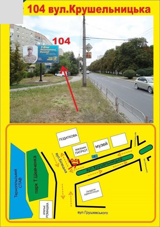 Заказать Билборд в г. Тернополь по адресу Крушельницька можно позвонив менеджерам по телефонам: +38(099) 395-28-27, или через форму онлайн заявки