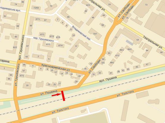 - Адрес: Пушкина ул., 27, центр города, в сторону магазина "Фуршет"