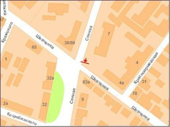 Схема рекламной плоскости по адресу на перекр. ул. Сенная и ул.Шевченка