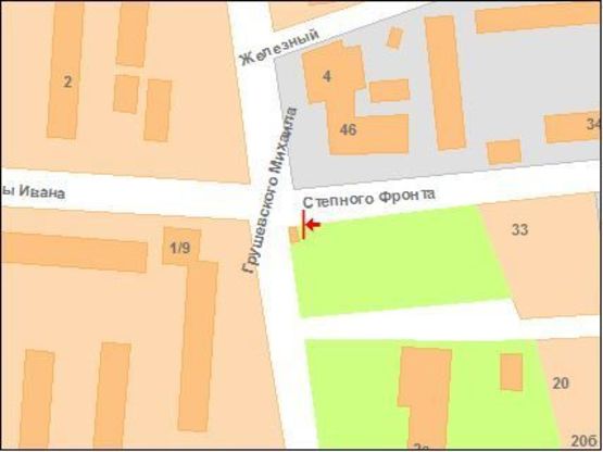 - Адрес: І.Мазепи вул. (Калініна) та Грушевського вул. (перехр.)
