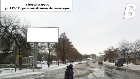 Билборд в г. Новомосковск / Самар на ул. 195-й Стрелковой дивизии, Автостанция, Борд 3х6, расположен по движению потока автотранспорта. Рядом расположены автостанция Новомосковск, Свято-Троицкий Собор, магазины, базарная площадь.