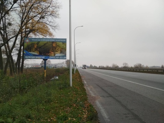 Билборд в г. Трассы на Траса Житомир-Київ. За заправкою "Сокар",напрямок з Києва на Житомир ст.Б
