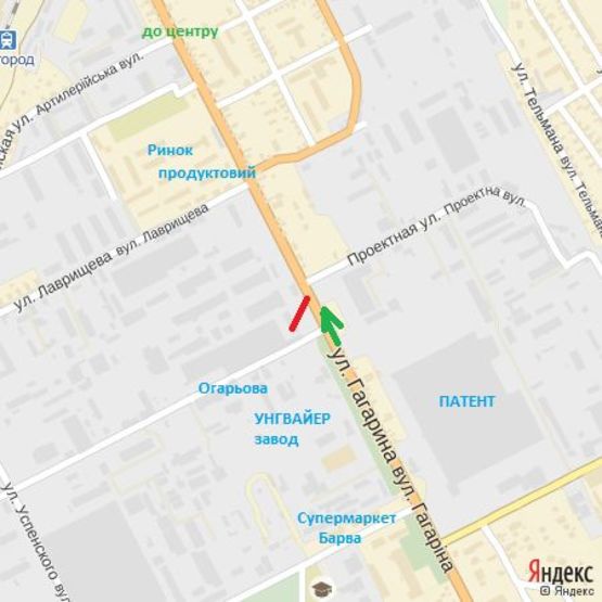 - Адрес: вул.Гагаріна,30-Огарьова, напр.-вул.Анкудінова-до центру
