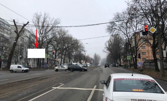 Билборд в г. Днепропетровск/Днепр на s153B,просп. Богдана Хмельницького - вул. Будівельників, біля зупинки, на світлофорі