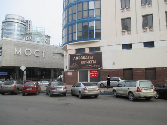 Билборд в г. Днепропетровск/Днепр на Харьковская 8а на фасаде внизу здания (центр - внизу на фасаде здания напротив Апелляционного суда),