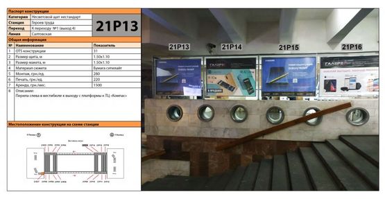 Схема рекламной плоскости по адресу Станция метро: Героев Труда, Перила в вестибюле Компас слева