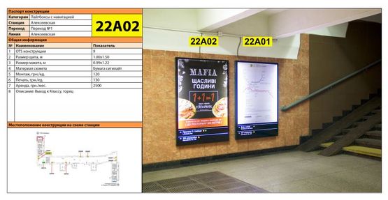 Схема рекламной плоскости по адресу Станция метро: Алексеевская, Выход к Классу, торец