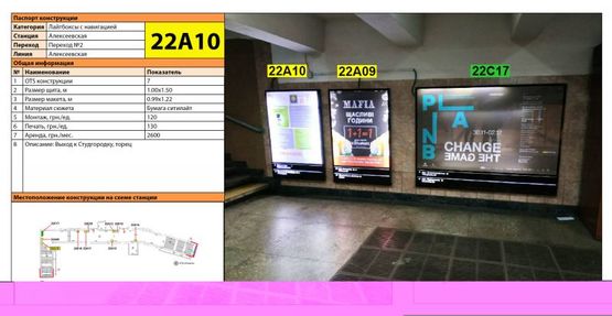 Схема рекламной плоскости по адресу Станция метро: Алексеевская, Выход к Студгородку, торец
