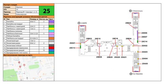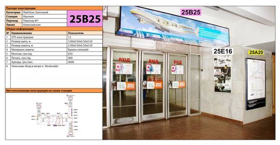 Схема рекламной плоскости по адресу Станция метро: Научная, Вход в метро к Макдональдз