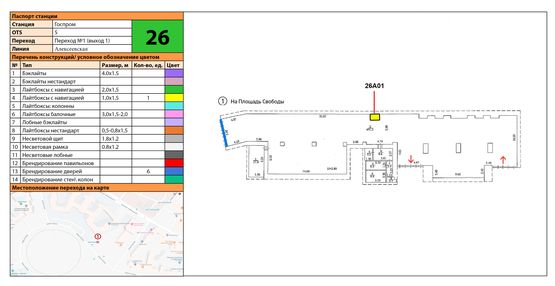 Схема рекламной плоскости по адресу Станция метро: Госпром, в вестибюле