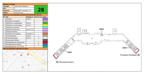 Схема рекламной плоскости по адресу Станция метро: Захисників України,