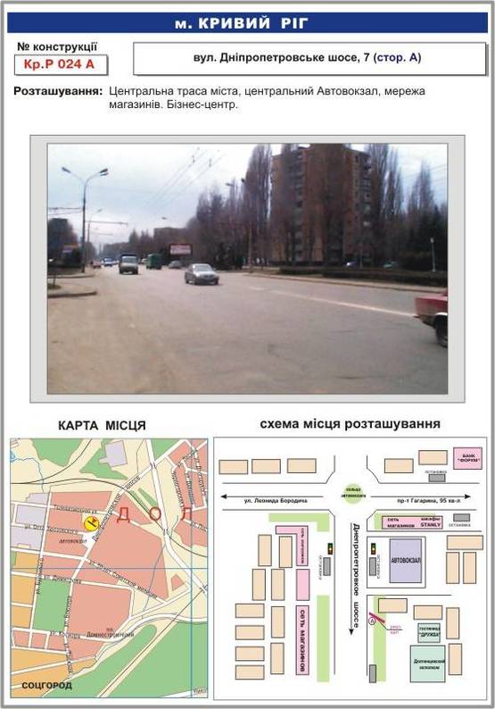 Билборд в г. Кривой Рог на вул. Днепрошосе 7 Автовокзал