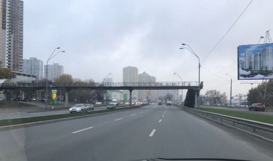 Реклама на мосту в г. Киев на вул. Саперно-Слобідська,22 100м до Леруа Марлєн, в напрямку Деміївської площі