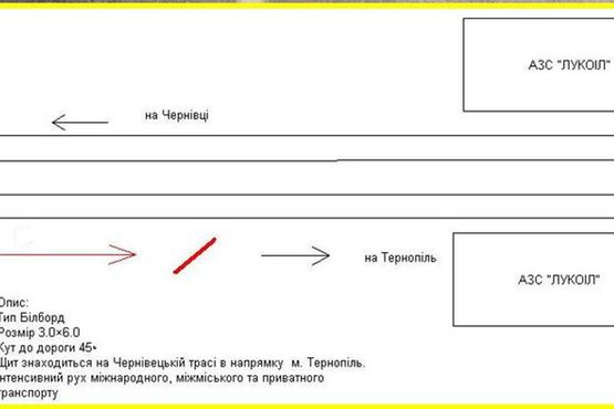 Схема рекламной плоскости по адресу Виїзд з Тернополя, Чернів. тр. АЗС Лукоіл