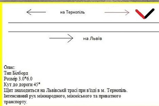 Схема рекламной плоскости по адресу з Тернополя на Львів