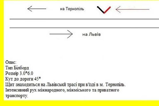 Заказать Билборд в г. Трассы по адресу Вїзд в Тернопіль , зі Львова можно позвонив менеджерам по телефонам: +38(099) 395-28-27, или через форму онлайн заявки