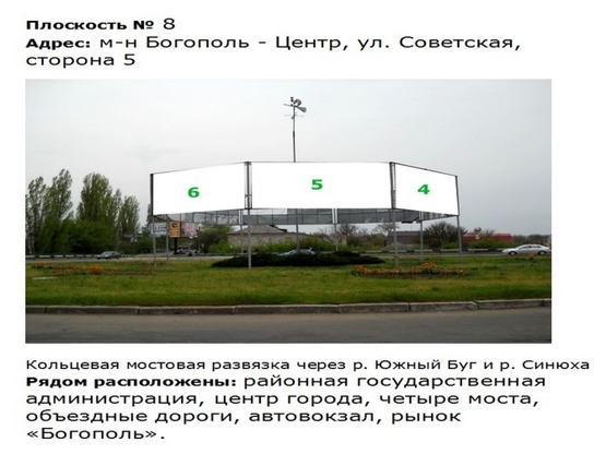 Заказать Билборд в г. Первомайск (Ник. обл.) по адресу Кольцево мостовая развязка_8-мигранная конструкция_ул. М. Винграновского (бывшая ул. Советская)_м-н Богополь 5 можно позвонив менеджерам по телефонам: +38(099) 395-28-27, или через форму онлайн заявки
